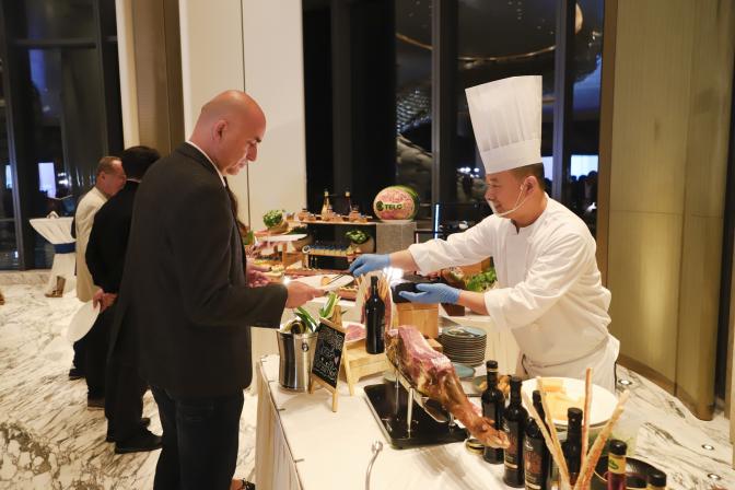 同时,山西潇河新城万达锦华酒店还为来自各国的外宾准备了一场空中酒廊冷餐会,这不仅是味蕾的享受,更是一次文化融合的体验。酒店巧妙地将山西本地风味与国际餐饮风格相结合,让外宾在轻松的社交氛围中,完成了一场别开生面的“舌尖上的山西之旅”,留下了深刻的文化印象。
