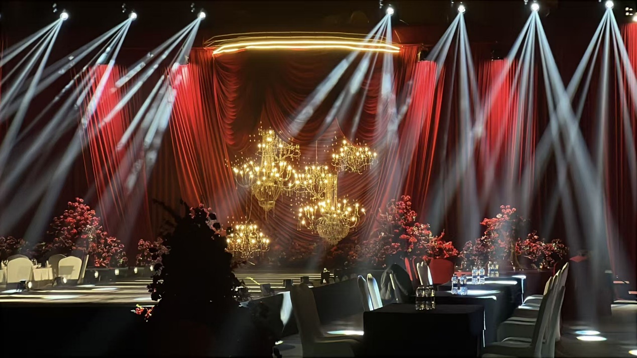 本次“春序赴爱”春季婚礼秀,以春日自然为灵感源泉,将酒店1200平方米无柱式大宴会厅打造成浪漫秘境。现场以红色绸缎与春日花艺为基调,搭配灵动的灯光与质感布艺,错落有致的布置将春日的生机与婚礼的仪式感完美融合。