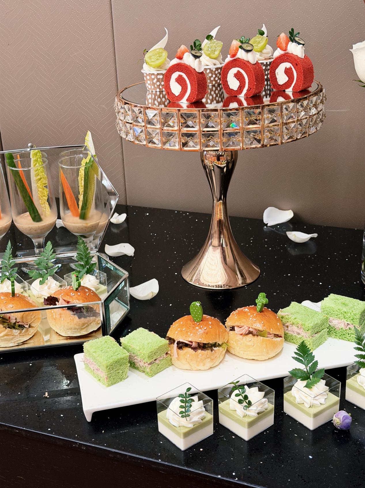 插花体验后,酒店精心准备精致茶歇,甜点与暖饮相得益彰,为嘉宾带来味蕾与心灵的双重治愈。活动尾声,嘉宾们手捧自制花篮合影留念,快门定格下花香与笑容,留存下温馨美好的节日瞬间。