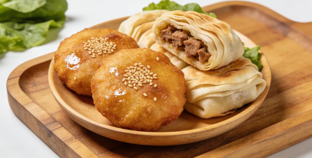 继续前行,早市的“碳水炸弹”区是最热闹的。油炸糕在油锅里膨胀成金黄色的球,一口咬下,外皮酥脆得惊人,内里滚烫的豆沙馅甜得恰到好处。牛肉火勺则在铁板上被烙得两面焦黄,面香与肉香交织,五块钱能买上七个,是真正的“扛饿”神器。摊主是一对中年夫妇,丈夫专注地揉面、包馅,妻子熟练地煎烙、装袋,两人配合默契,十几年的时光仿佛就凝固在这方寸灶台之间。这些简单的食物,没有复杂的故事,却是几代沈阳人最真实的早餐记忆。