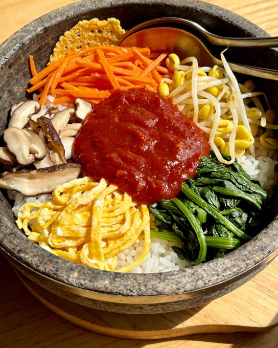 石锅拌饭:热气腾腾的石锅里,米饭与蔬菜、辣酱、煎蛋完美融合,锅底的焦香是精华。