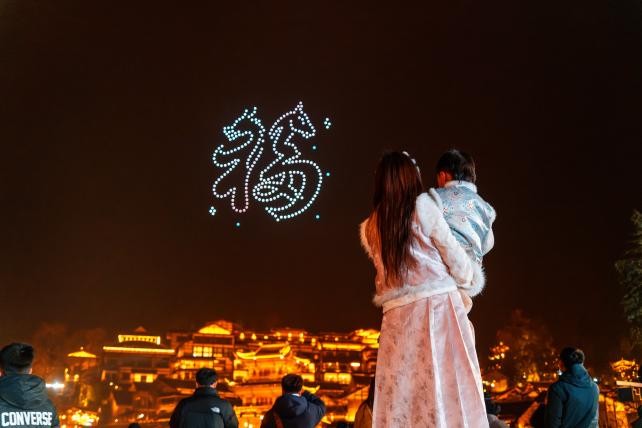 除大型演出外,景区还精心设置了诸多可参与、可体验的互动场景。从二次元街延伸至芦笙广场的新春市集,将集结糖画、手写春联、古法爆米花等传统手艺,唤醒记忆中的年味。游客还可亲手书写祈愿,在特定区域放飞孔明灯,让承载美好希冀的灯火汇入璀璨星河。